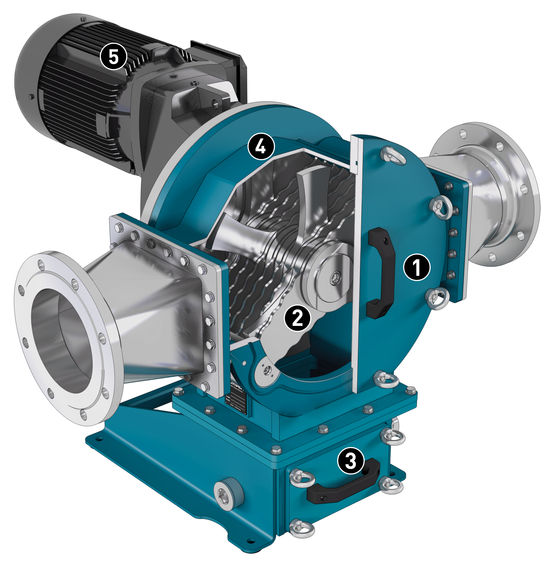 - Blades. The Multicrusher is designed so that you can choose which way the pumped medium flows by inserting the individual blade disks and defining the direction of rotation of the shafts. Various blade widths and cutting profiles determine the final cutting yield. The central fastening screws hold all the blade disks in position. Blades are one of the parts that wear out the most and require replacement, so it is important that such work is carried out by loosening just a few nuts, without any additional equipment.